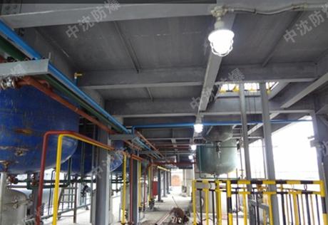 防爆燈應用現(xiàn)場。在現(xiàn)場,防爆燈采用了吸頂式安裝方式,由防爆活接頭連接至頂部的防爆接線盒。防爆燈外殼采用鋁合金壓鑄殼體,表面高壓靜電噴塑,保護網(wǎng)采用優(yōu)質(zhì)碳素鋼鍍鋅后表面噴塑,雙重防腐,防爆燈內(nèi)裝節(jié)能光源,性能穩(wěn)定可靠。防爆燈為企業(yè)提供了安全可靠的照明環(huán)境。