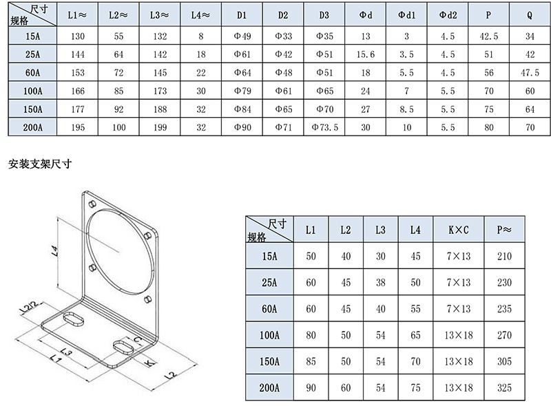 額定電流 15A、25A、60A、100A、150A、200A、300A 環境溫度 -20 ~ +60℃