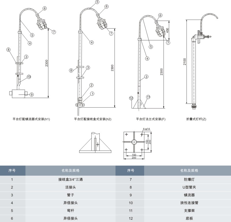 * 01、05、06型可根據用戶要求配裝燈傘。