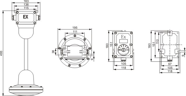 > 含有ⅡA、ⅡB類溫度級別T1-T4組爆炸性混合物場所;